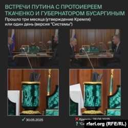Что, скорее всего, произошло: по версии "Системы", встречу с Бусаргиным Путин провел не 28 августа, как утверждает Кремль, а 29 мая, то есть за день до встречи с протоиереем Ткаченко. Путин за день успел сменить костюм, карандаши в стакане перемешались, а ручки остались на своих местах. Именно 29 мая в телеграм-канале Бусаргина не появилось ни одного фото или видео с ним. До этого пресс-служба губернатора публиковала посты с его участием почти каждый день, даже в выходные.